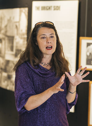 In der Dombauhütte gaben Elena Efeoglou, Andrés Galeano und Pauline Hafsia M’barek spannende Einblicke in ihre Arbeit und teilten erste Eindrücke aus ihrer Zeit in den jeweiligen Archiven. Im Kölnischen Stadtmuseum tauschten sich Marta Bogdańska und Jimmi Wing Ka Ho im Gespräch mit Helena Weber über ihre individuellen Herangehensweisen und ihre Entdeckungen in den einzelnen Sammlungen aus.