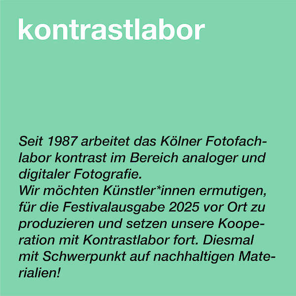 Wir möchten Künstler*innen ermutigen, für die Festivalausgabe 2025 vor Ort zu produzieren und setzen unsere Kooperation mit Kontrastlabor fort. Diesmal mit Schwerpunkt auf nachhaltigen Materialien!