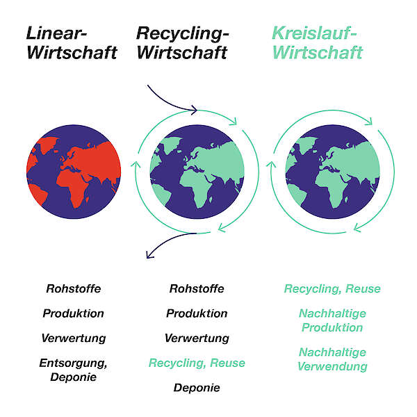 Als Nutzer:innen von Gegenständen und Verbraucher:innen können wir in das Schaubild einsteigen und Produkte aus bereits recycelten Materialien nutzen oder konsumieren, etc. ♻️🌿