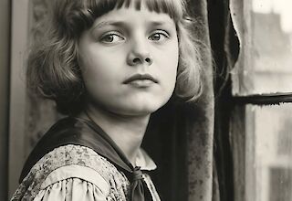 Elena Efeoglou, Anda. KI generiertes Bild zu August Sander: Mädchen im Kirmeswagen, 1926–1932