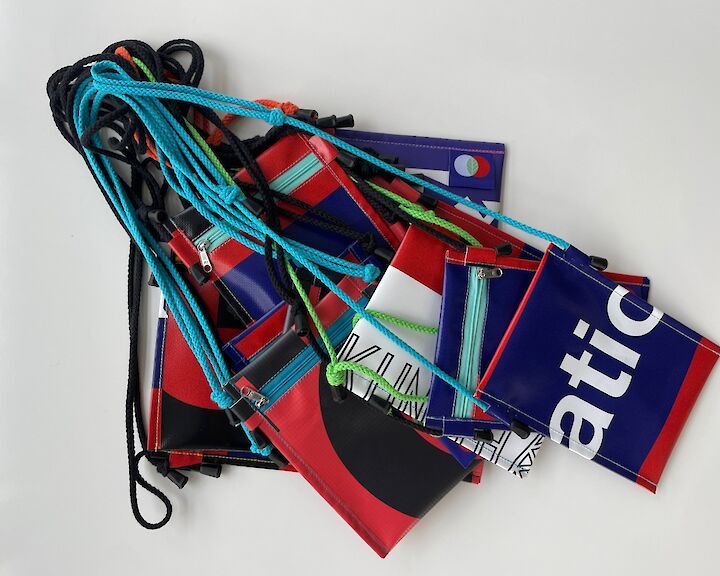 maesh hat alte Werbebanner der Photoszene in tolle Accessoires verwandelt. Es sind coole Shopper, Mäppchen und Brustbeutel einstanden.