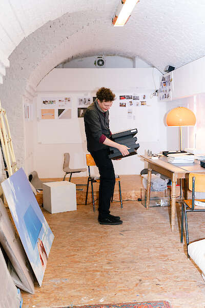 I'm a photographer and artist from Cologne, here in my studio in the Südstadt. I come, I would say, originally from documentary photography, and then during my studies, I also started working more in the form of exhibitions. And the idea that a piece doesn’t end with photographing but only comes into being in the installation has led me to engage heavily with materiality and to try to extend this process even into the installation itself.